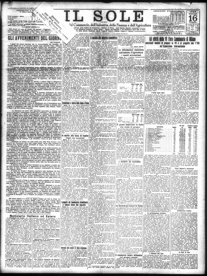 Il sole : giornale commerciale, agricolo, industriale... : organo ufficiale della Camera di commercio e industria di Milano ...