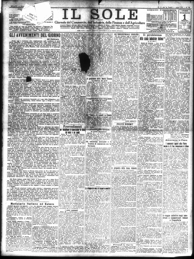 Il sole : giornale commerciale, agricolo, industriale... : organo ufficiale della Camera di commercio e industria di Milano ...