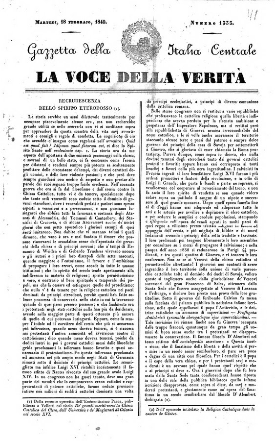 La voce della verità gazzetta dell'Italia centrale
