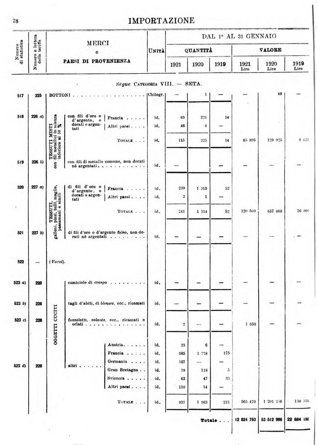 Statistica del commercio speciale di importazione e di esportazione Pagina 278