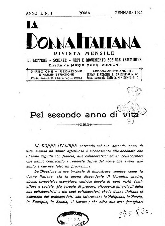 - La donna italiana rivista mensile di lettere, scienze, arti e movimento sociale femminile