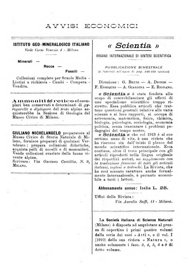 - Milano : Società italiana di scienze naturali, 1909-