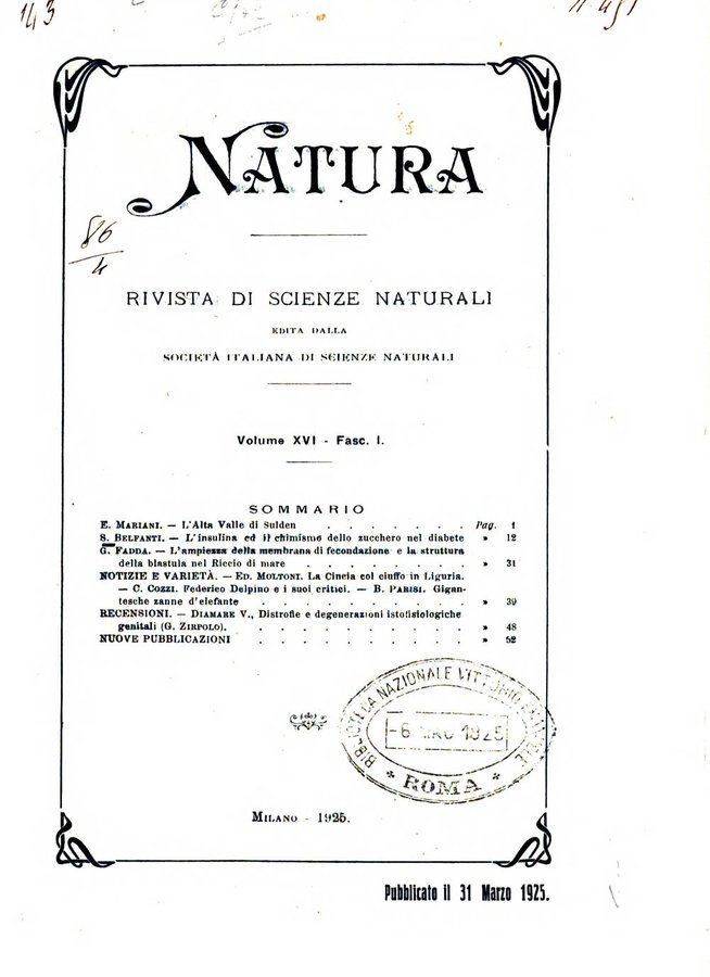 - Natura rivista mensile di scienze naturali
