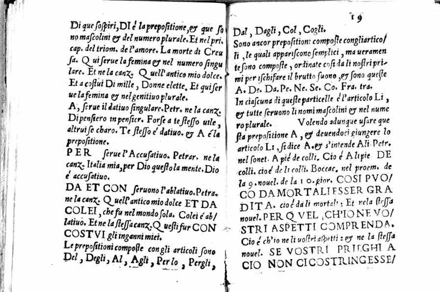 Per l'autore cfr.: G. Ghinassi, Correzioni editoriali di un grammatico del Cinquecento, in: Studi di filologia italiana, XIX, 1961, p.39 - Segnatura: A-Q⁴; ripetute nella numerazione le carte 16 e 59; la carta 23 segnata 13; corsivo, romano; iniziale e cornice del frontespizio xilografiche.