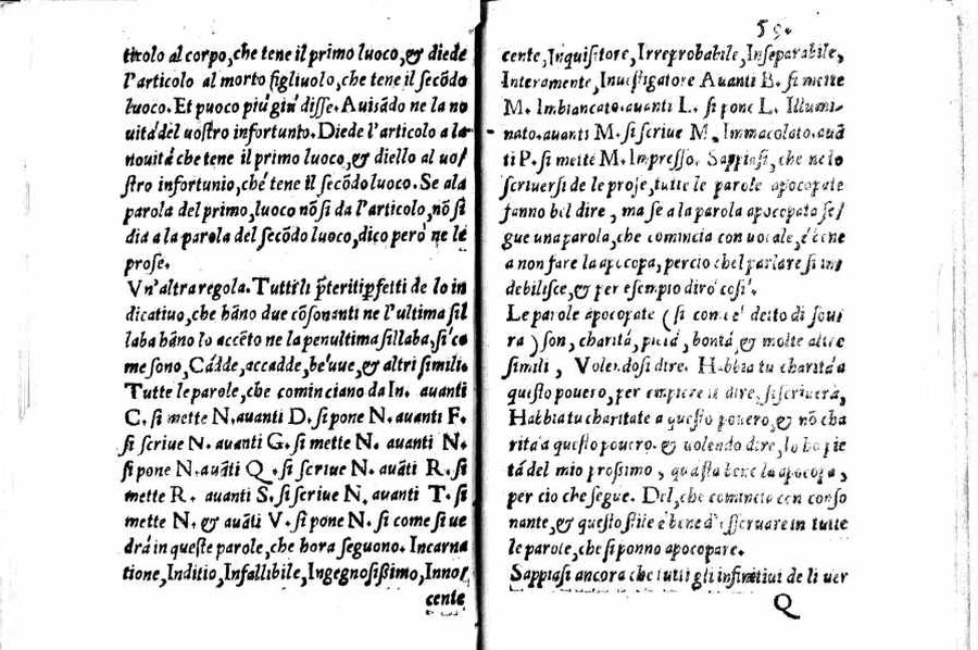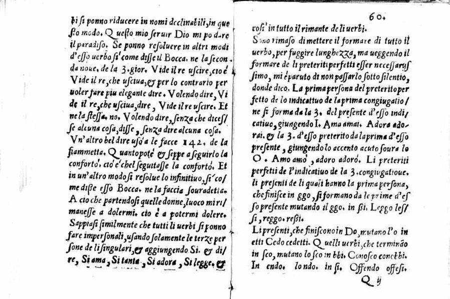 - Per l'autore cfr.: G. Ghinassi, Correzioni editoriali di un grammatico del Cinquecento, in: Studi di filologia italiana, XIX, 1961, p.39 - Segnatura: A-Q⁴; ripetute nella numerazione le carte 16 e 59; la carta 23 segnata 13; corsivo, romano; iniziale e cornice del frontespizio xilografiche.