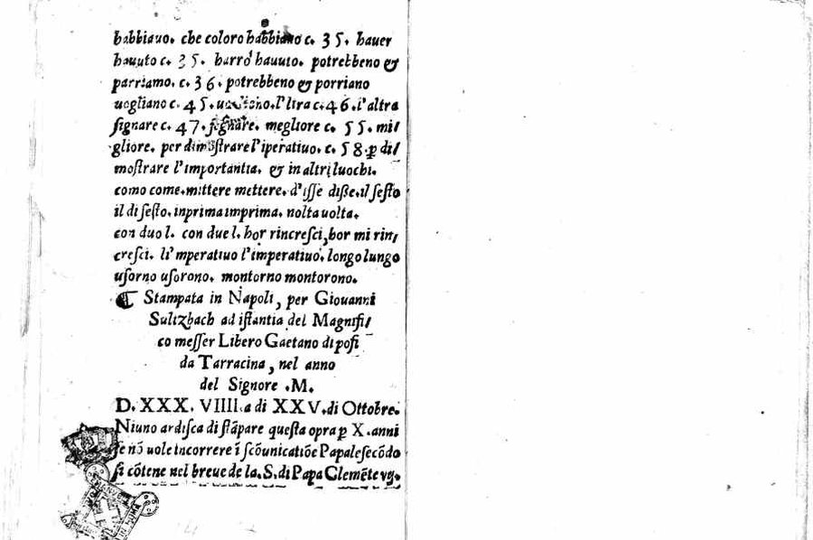 - (Stampata in Napoli per Giouanni Sulzbach ad istantia del magnifico messer Libero Gaetano di pofi da Tarracina 1539 a di XXV. di Ottobre)