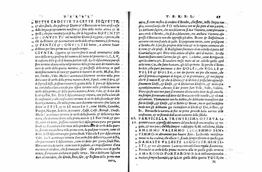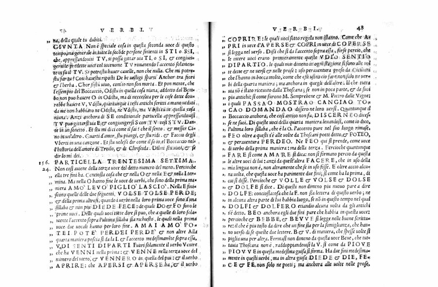 Manca il nome dell'autore, Lodovico Castelvetro, in quanto condannato dall'Inquisizione nel 1560, cfr.: Melzi, G. Anonime e pseudonime, I, p. 462 - Emblema del Castelvetro (Civetta, con motto in greco: Kekrika) sul frontespizio - Segnatura: [a]² b-d⁴ A-X⁴ Y⁶; corsivo, romano; iniziali xilografiche.