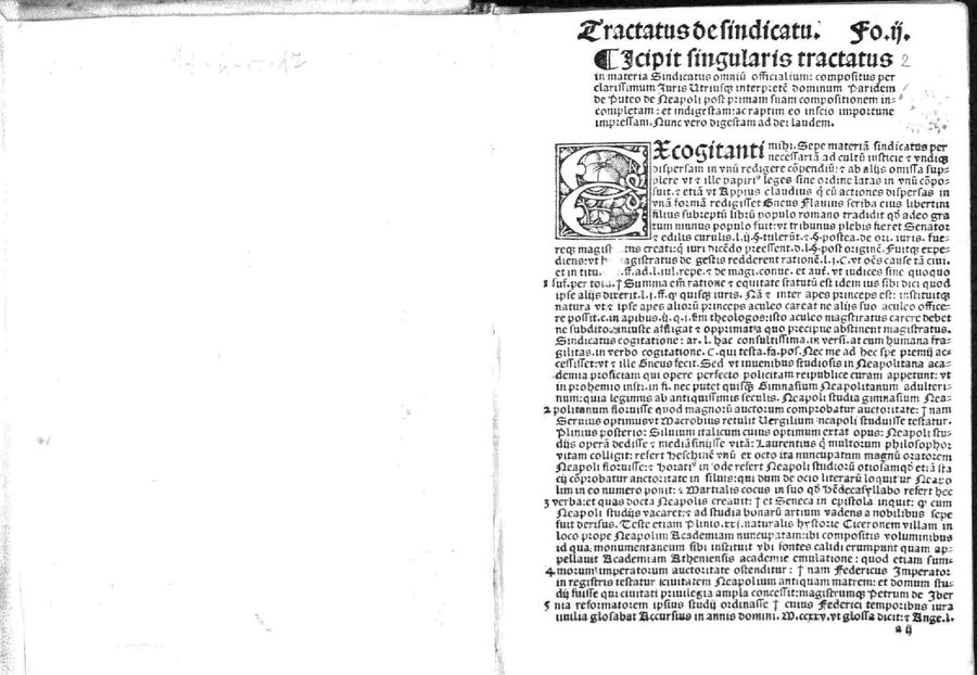Paris de Puteo De sindicatu: Excellentissimi ac doctissimi Iuris vtriusque doctoris maximique practici domini Paridis de Pueto Neapolitani In materia sindicatus omnium officialium Tractatus vna cum apostillis domini Benedicti Vadi forosemproniensis in margine appositis: & Tabula eiusdem domini Benedicti recenter edita. Adiecta sunt etiam nonnulla summaria valde vtilia (que in alijs exemplaribus antea impressis non reperies) principales materias amplectentia.