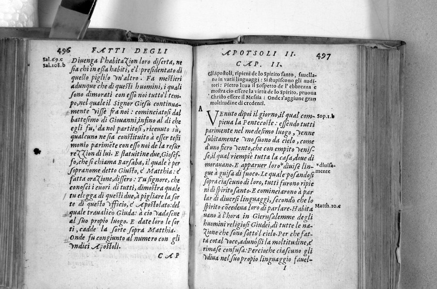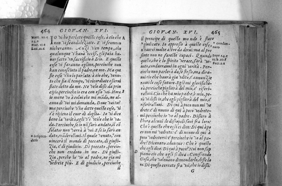 Contiene anche a c. 2a1r: L'epistole di S. Paolo apostolo. ... L'epistole canoniche ... E la riuelazione di San Giouanni teologo - L'identificazione del tip., Jean Frellon, è basata su materiale tipogr. (cfr. NUC 55, p.632 e E. Barbieri, Le bibbie italiane, 1992, p. 325, nota 1) - Marca n.i. e n.c. (falcone incappucciato sopra una mano che esce da una nuvola. Motto: Post tenebras spero lucem) sul front - Cors. ; rom - Segn.: [ast]⁸ 2[ast] ⁸a-b⁸ ²a-z⁸ A-R⁸ 2a-2z⁸ 2A-2H⁸ - Bianca c. R8 - Iniziali xil - Var. B: priva dei fasc. a-b⁸ - Altra emissione con front. e c. *8 ricomposti: Il Nuouo Testamento di Giesu Christo nostro signore, nuouamente riueduto e ricoreto ..., In Lione, appresso Bastiano Honorati, 1565, cfr. CNCE005962. -