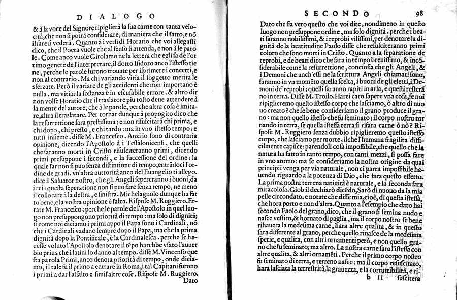 - Marca (U462) sul front - Cors. ; rom - Segn.: A-Z⁴&⁴a-g⁴h²i-n⁴o² - Ripetuta nella numerazione c.21 - Iniziali e fregi xil - Var. B: sul front. data 1574