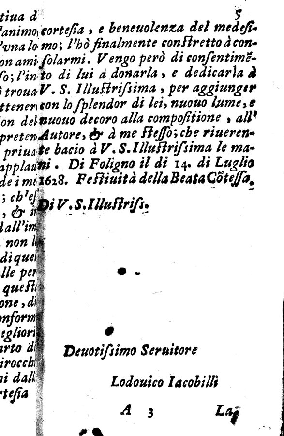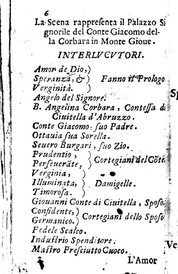 La beata Angelina tragicomica rappresentatione. Del signor Francesco Cirocco da Foligno. Esposta alle stampe dal sig. Lodouico Iacobilli dalla medesima città. Dedicata all'illustrissimo signor conte Ranuccio Della Corbara