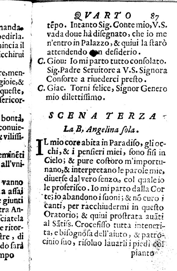 Dettaglio libro antico : La beata Angelina tragicomica rappresentatione. Del signor Francesco Cirocco da Foligno. Esposta alle stampe dal sig. ...