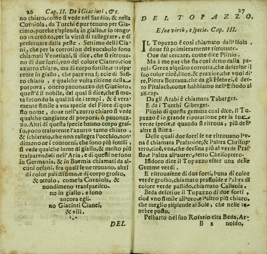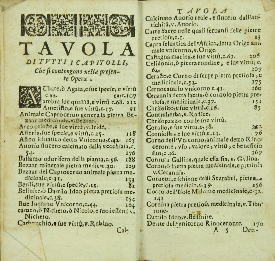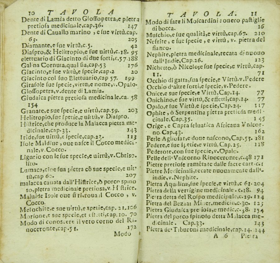 - Tesoro delle gioie trattato curioso, nel quale si dichiara breuemente le virtù, qualità, e proprietà delle gioie, come perle, gemme, auori, ... e molt'altre cose più famose, e pregiate di tutti li diligentissimi scrittori antichi, ... lodate, stimate, e conosciute saluteuoli, e medicinali. Raccolto dall'Accademico Ardente Etereo. Reuisto, & accresciuto dall'Academico Cassinense Inquieto