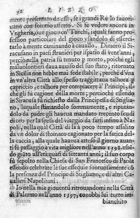 - Segn.: A-2R⁸ - Omesse nella numerazione le p. 353-356 - Vignetta xil. (scacchiera) sul front - Stemma del dedicatario?, Francesco Branciforte, sul v. del front.