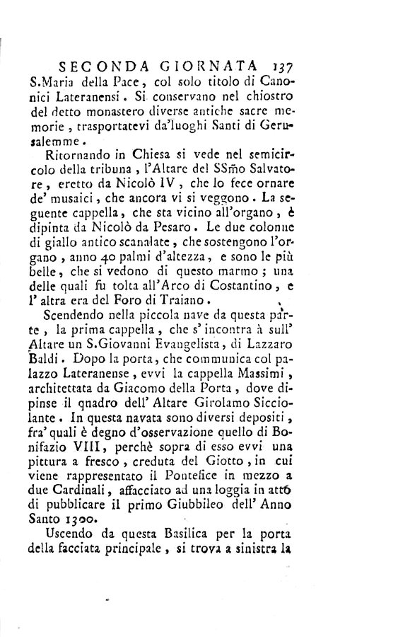 - Occhietto - Segn.: a¹² b⁸ A-N¹² O⁶ - Le c. di tav. contengono: ill. calcogr.; le due c. di tav. ripieg. contengono: piante di Roma antica e moderna - Contiene: itinerari dalla prima alla quarta giornata.
