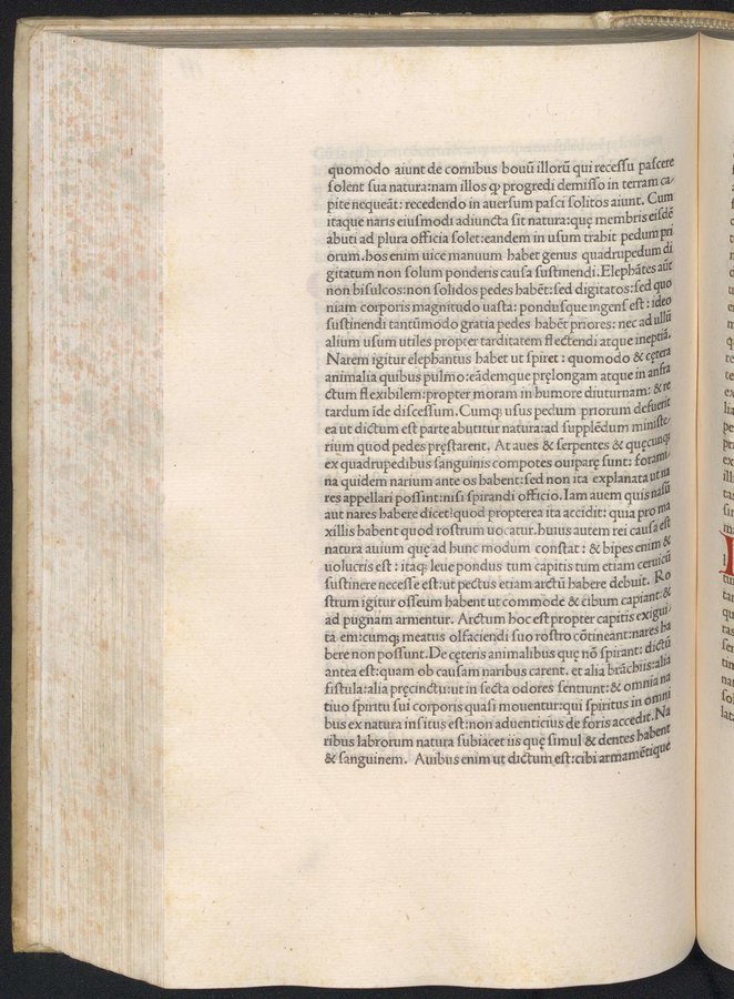 - Riferimenti: ISTC ia00973000; IGI 803 - Editio princeps della traduzione di Teodoro di Gaza del De animalibus, cfr.: S. Perfetti, 'Cultius atque integrus' Teodoro Gaza, traduttore umanistico del De partibus animalium, in: Rinascimento, XXV (1995), p. 253-286 - Explicit e colophon a carta 2f4v - Romano - Spazi bianchi riservati per iniziali con lettere guida - Segnatura: a-b¹⁰ c-d⁸ e¹⁰ f⁸ g¹⁰ h⁸ i¹⁰ k⁸ l-t¹⁰ u⁸ x¹⁰ 2a-2d¹⁰ 2e⁸ 2f⁶ (a1, 2f6 bianche)