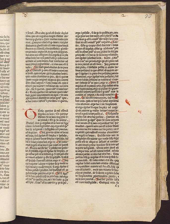 - Riferimenti: GW 4658; HC 3539; IGI 1884; BMC VI, 892; Ageno, Librorum saec. 15..., a c.di Gasparrini Leporace, Firenze, Olschki...1954, n.150; copia digital. della Universitäts-und Landesbibliothek Düsseldorf disponibile in linea - Explicit legato al colophon a carta r5v - Spazi riservati per iniziali - Gotico - Testo su due colonne - Segnatura: A-O¹⁰ P-Q⁸ R¹⁰, a-f¹⁰ g¹² h-p¹⁰ q-r⁸.