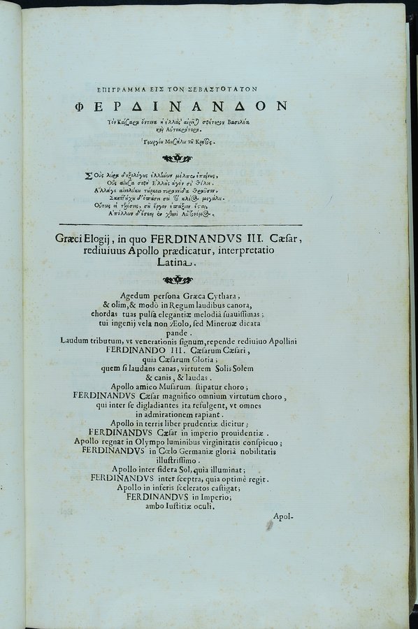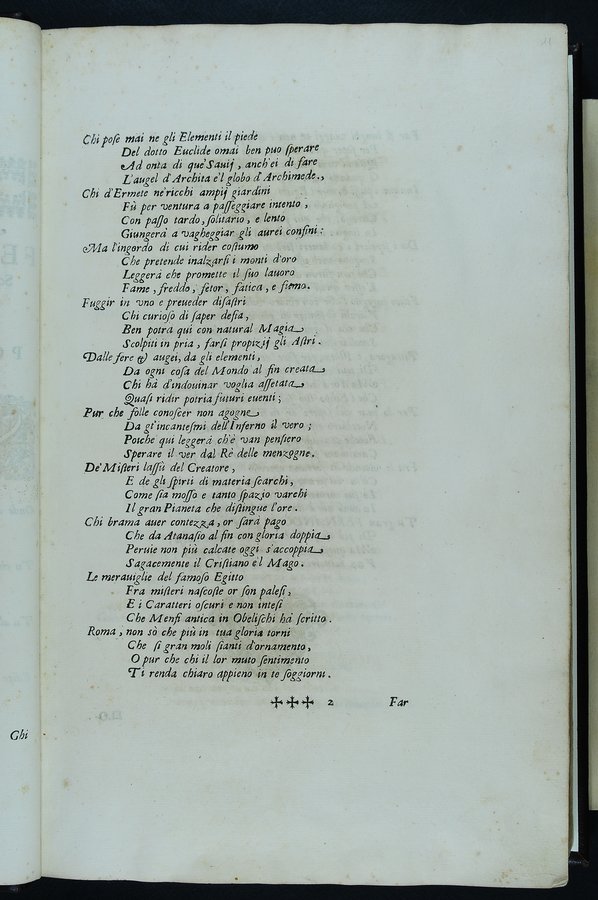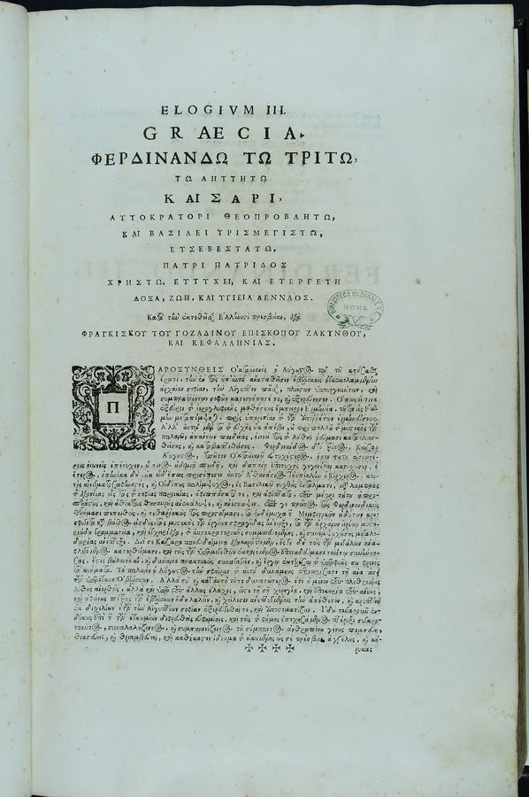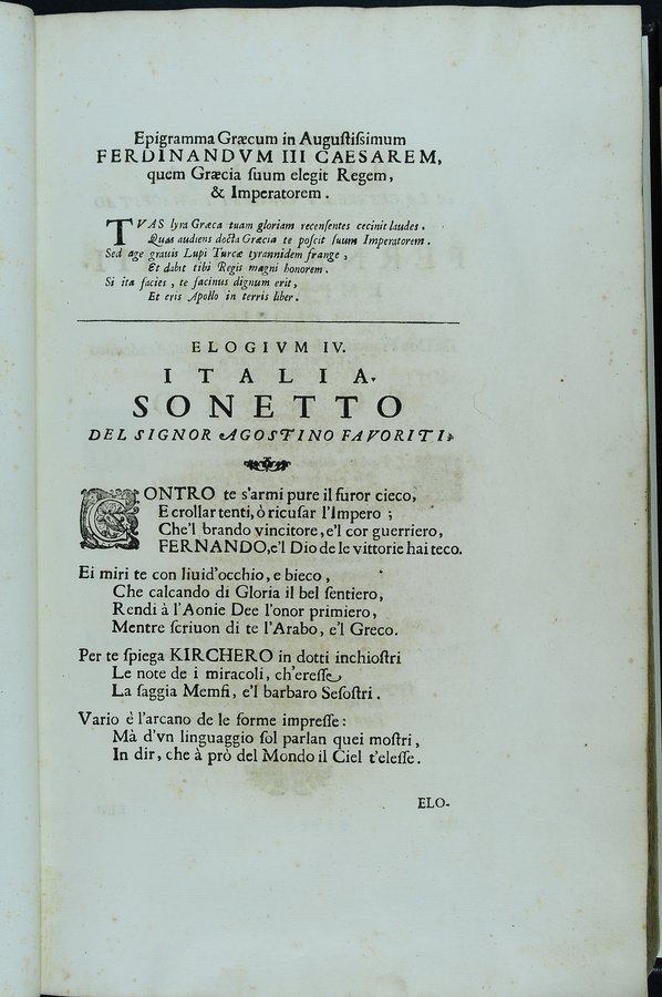 A carta [✝]1 antiporta calcografica sottoscritta: Io. Ang. Caninius Rom. del., C. Bloemaert sculp - A carta [✝]3v ritratto di Ferdinando III sottoscritto: Iacobus Bichi delin., C. Bloemaert sculp. Romae - Segnatura: [✝]⁴ 2✝-9✝⁴ a-c⁴ d² A-3M⁴.