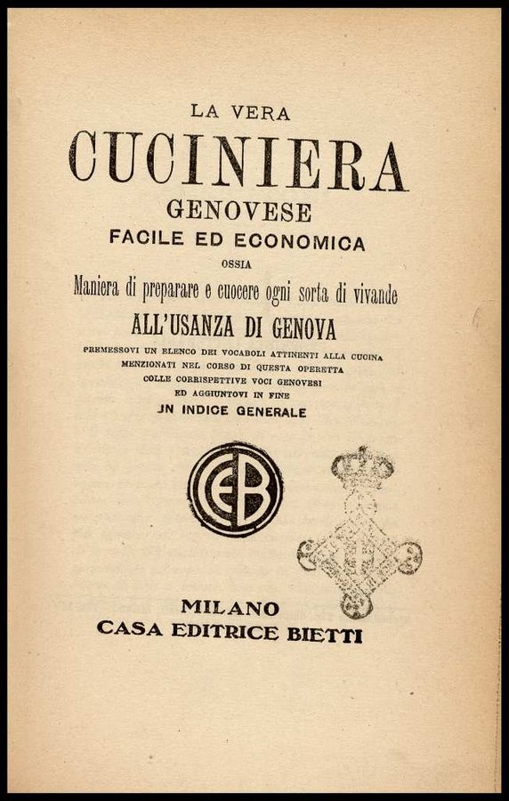 - La vera cuciniera Genovese, facile ed economica, ossia maniera di preparare e cuocere ogni sorta di vivande all'usanza di Genova [ecc. ]