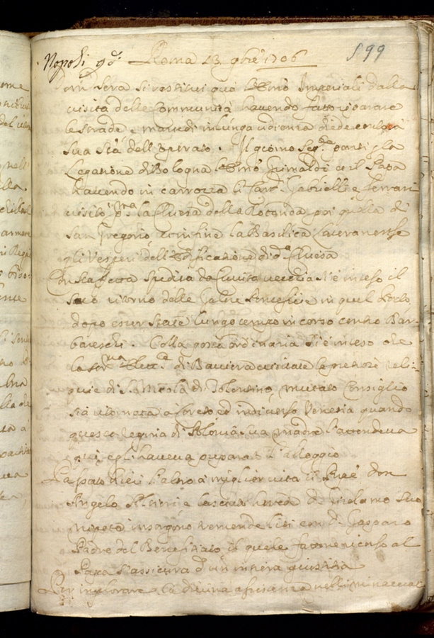 Dettaglio manoscritto : Avvisi di Roma. Relazioni diplomatiche al cardinale G. Marescotti. Vol. IV (1701-1707)