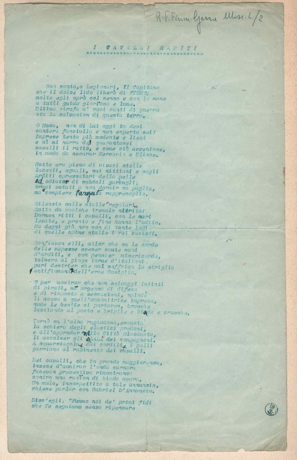 Con busta. Dattiloscritto con note manoscritte. In inchiostro nero e rosso e firma autografa. Allegati 2 ritagli di giornali incollati, riguardanti la morte di Marpicati