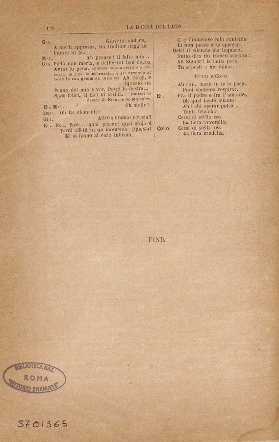 Dettaglio spartito : ˜La œdonna del lago : melodramma serio in due atti / di Andrea Leone Tottolaposto in musica da Gioachino Rossini ...