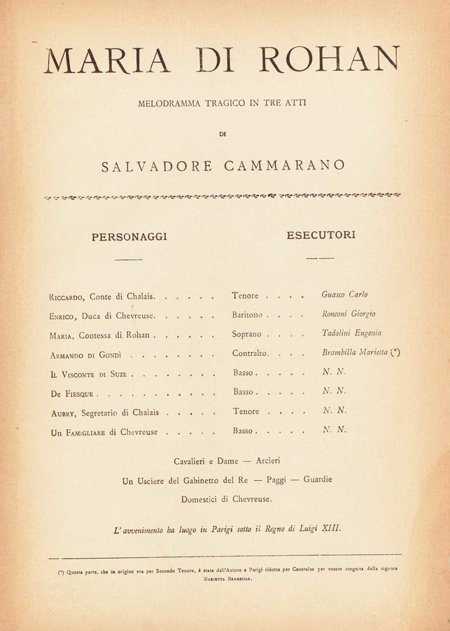 Dettaglio spartito : Maria di Rohan : melodramma tragico in tre atti / di Salvatore Cammarano ; [musica di] G. Donizetti
