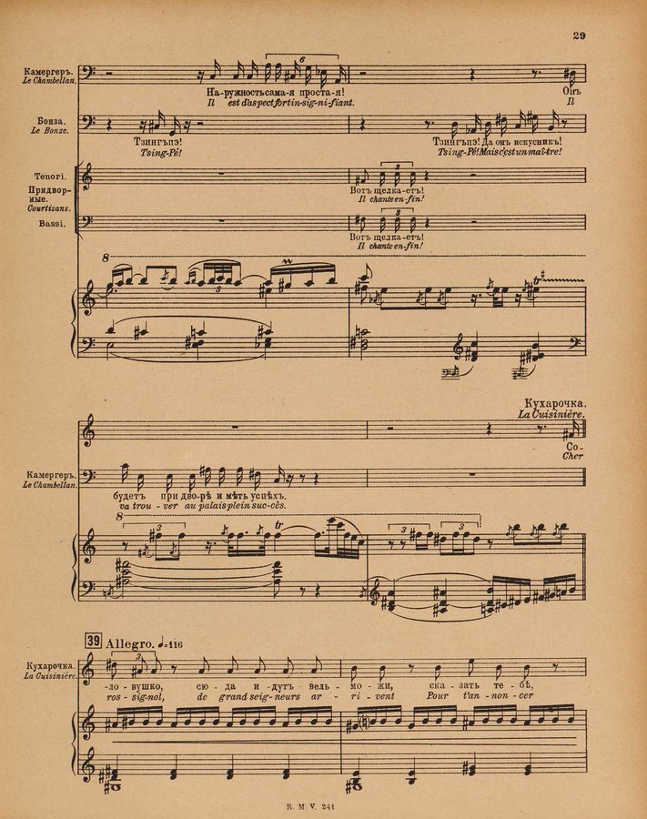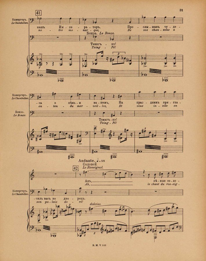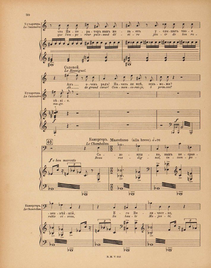 - Le rossignol : conte lyrique en trois actes de I. Strawinsky et S. Mitousoff, d'après Andersen / Igor Strawinsky ; traduction francais de M. D. Calvocoressi ; réduction pour chant et piano par l'auteur