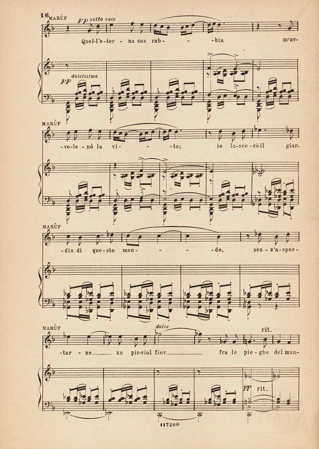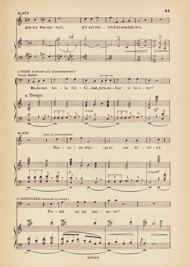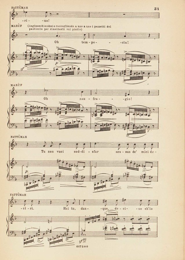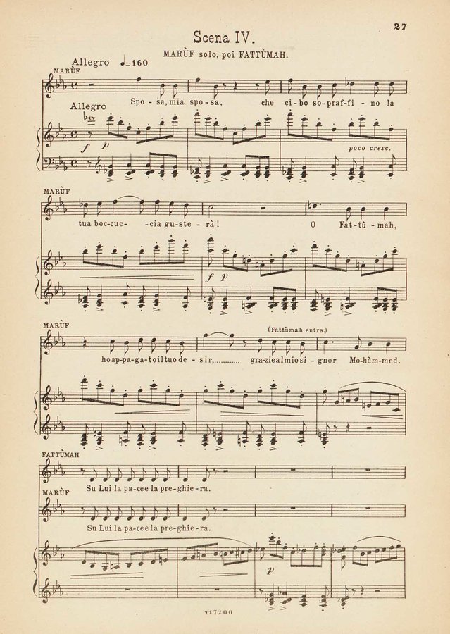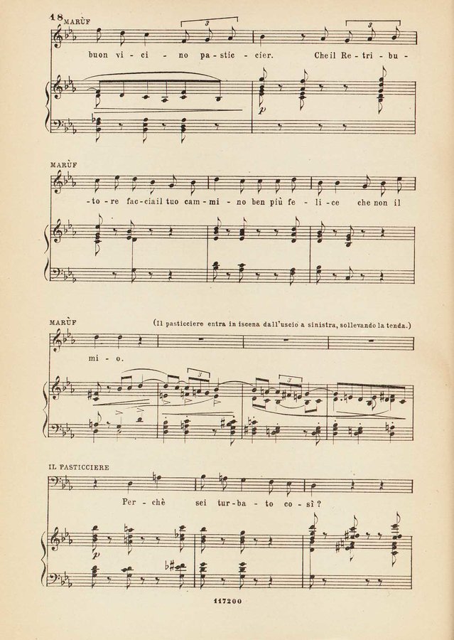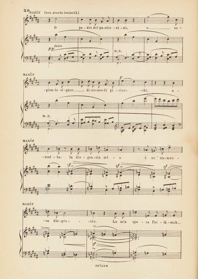 Dettaglio spartito : Marùf, ciabattino del Cairo : opera comica in cinque atti : tratta dalle Mille e una notte, secondo la traduzione ...