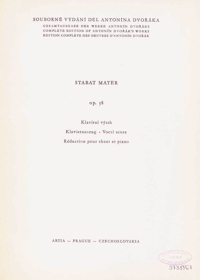 - Praha : Společnost Antonína Dvořáka : Státní Nakladatelství Krásné Literatury, Hudby a Umĕní, 1956