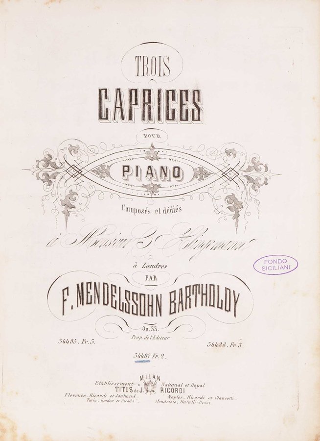 - Trois caprices pour piano : op. 33 / composée par F. Mendelssohn Bartholdy ; 3