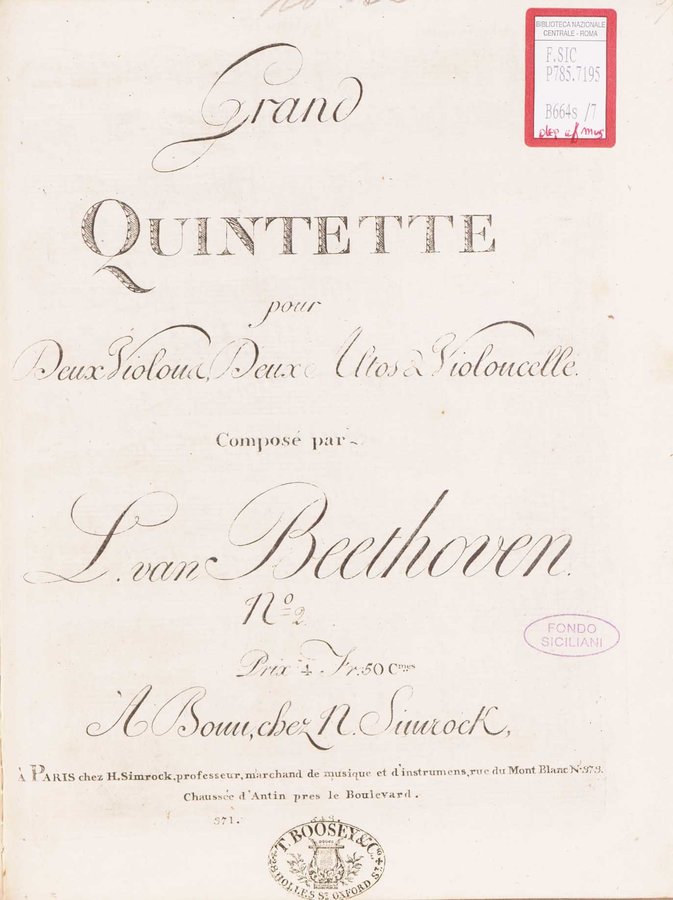 - Grand quintette pour deux violons, deux altos & violoncelle, no. 2 / composé par L. van Beethoven