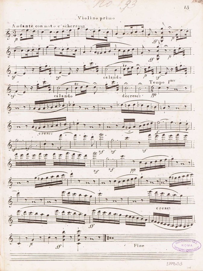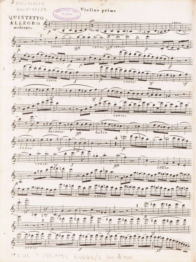 - Quintetto pour 2 violons, 2 altos et violoncelle. Violino primo
