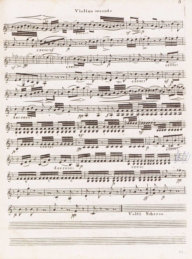 Dettaglio spartito : Quintetto pour 2 violons, 2 altos et violoncelle. Violino secondo