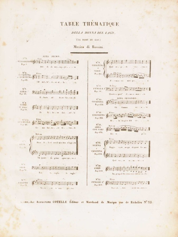 Dettaglio spartito : ˜La œdonna del lago : opera seria in due atti / musica del signor maestro Gioachino Rossini ; Ridotto per il piano ...