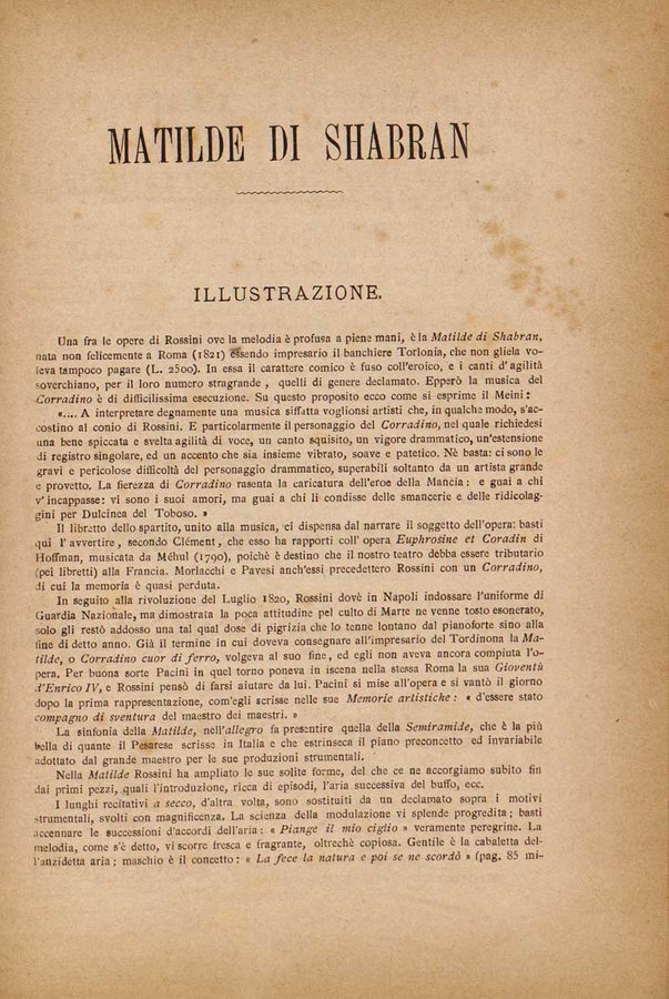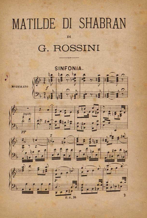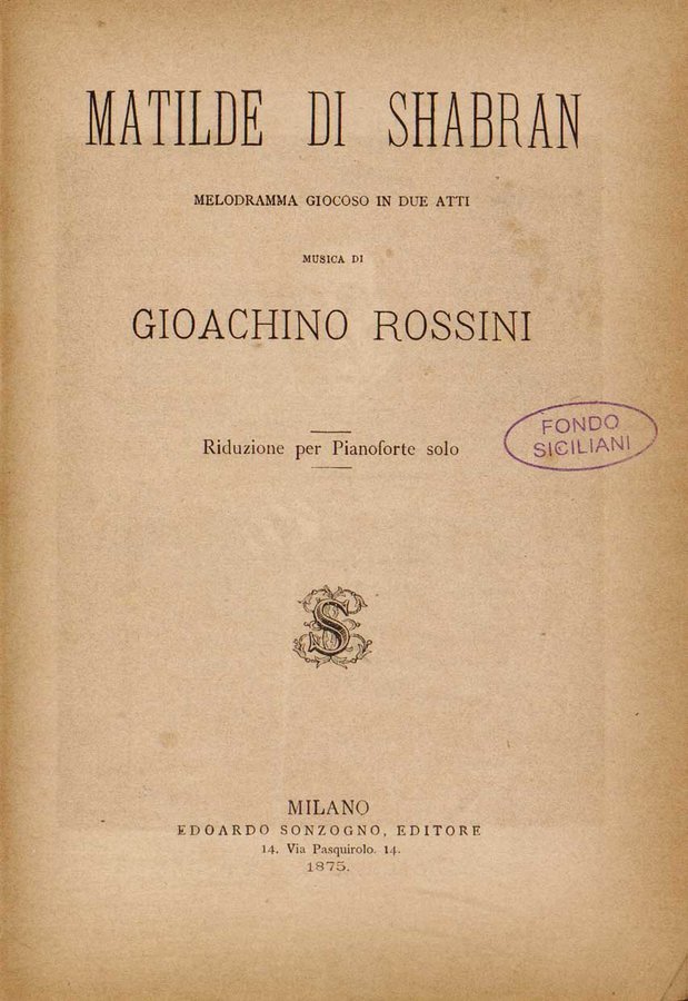 - Matilde di Shabran : melodramma giocoso in due atti / musica di Gioacchino Rossini ; riduzione per pianoforte solo