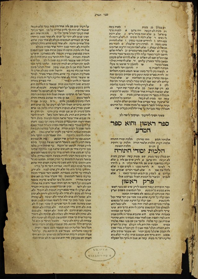 (Mishne Torah ... / 'ani Mosheh bar Maimon ... dine ha-Torah kulam be-lashon brurah ṿe-derekh ḳetserah)