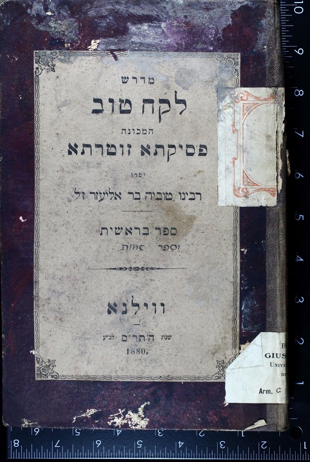 Midrash Leḳaḥ ṭov : ha-mekhuneh Pesiḳta Zuṭarta ʻal Ḥamishah Ḥumshe Torah / yesado Rabenu Ṭoviyah b. R. Eliʻezer zal ... ṿe-lo nidpas mimenu raḳ ḥeleḳ sheni ... be-Ṿenetsiʼa shenat 5 a. 306 ...