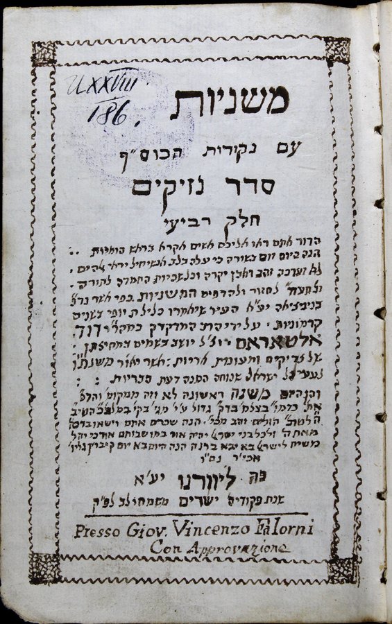 Mishnayot : ‘im neḳudot ha-kosef ... ke-fi asher nidpesu be-Ṿenetsi'ah ... Daṿid Altares ...