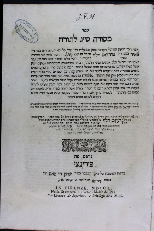 - Florence (Italy), Pas, Yitsḥaḳ de, 1750