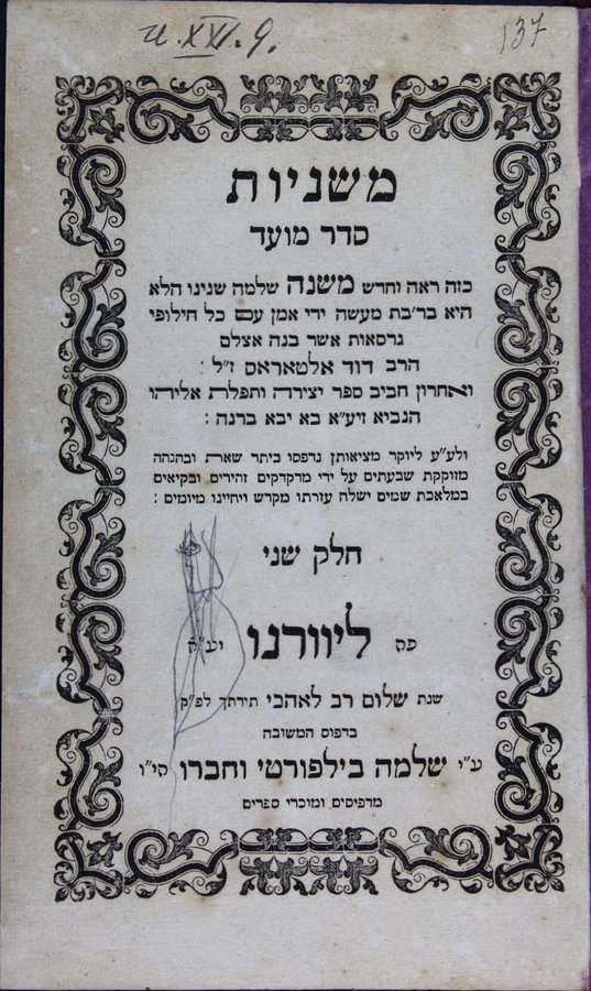 Mishnayot :... ḥilufe girsaʼot / asher banah ... Daṿid Alṭaras ... ṿe-aḥaron ... sefer Yetsirah u-Tefilat Eliyahu ha-navi ... ḥeleḳ 1-6 ...