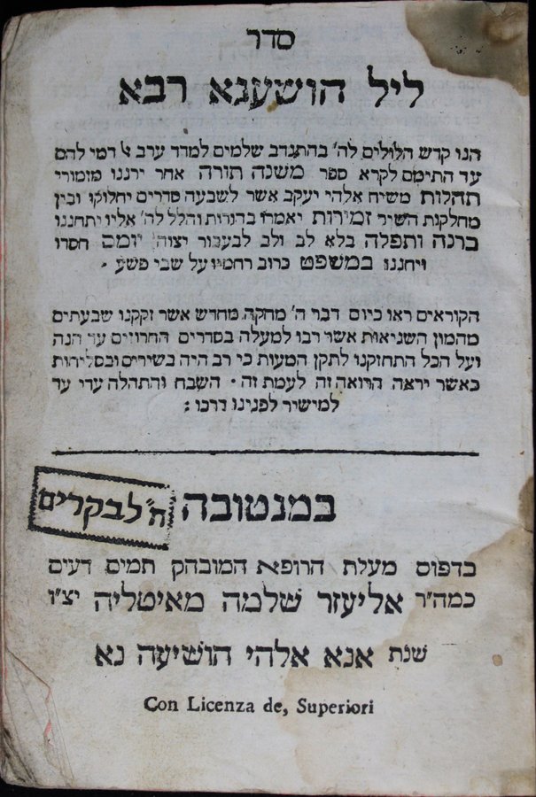 Seder Lel Hoshaʻna Raba : hino ḳodesh hilulim le-H. ... sefer Mishneh Torah ... mizmore Tehilot ... asher le-shivʻah sedarim yaḥloḳu u-ven maḥlaḳot ha-shir Zemirot yomeru ...