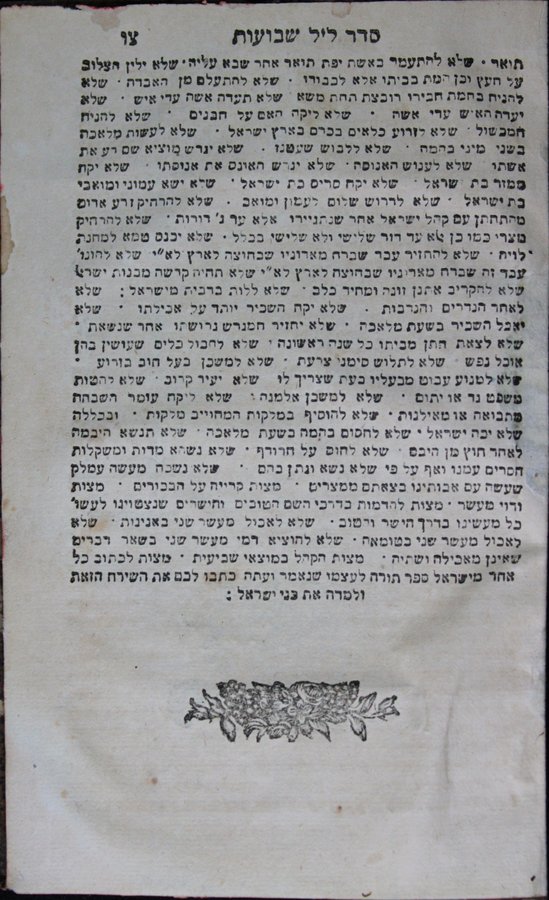 Sefer ḳeri'e mo‘ed : ... ri'shon seder shevi‘i shel Pesaḥ ... ha-sheni tiḳun lel shavu‘ot ... u-shelishi ... tiḳun lel hosha‘ana' raba' ...