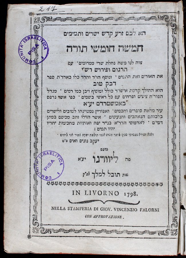 חמשה חומשי תורה : ... עם תרגום ופירוש רש"י ... ונוסף ... ספר דבק ...