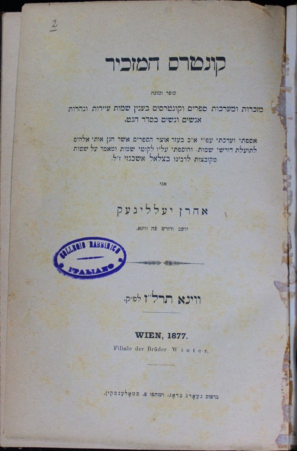 Ḳunṭres ha-mazkir : sofer u-moneh mazkarot u-maʻarakhot sefarim ... be-ʻinyan shemot ʻayarot ... anashim ṿe-nashim be-seder ha-Geṭ / asafti ṿe-ʻarakhti ... ani Aharon Yellineḳ.