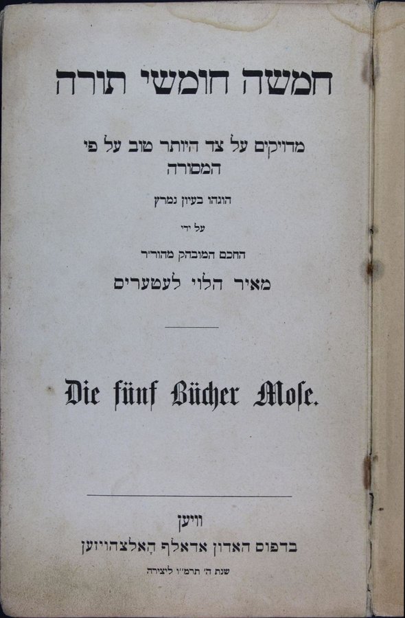 Ḥamishah Ḥumshe Torah : meduyaḳim ... ʻal pi ha-mesorah ... / ʻal yede ... Me'ir ha-Leṿi Le'eṭeʻeris.