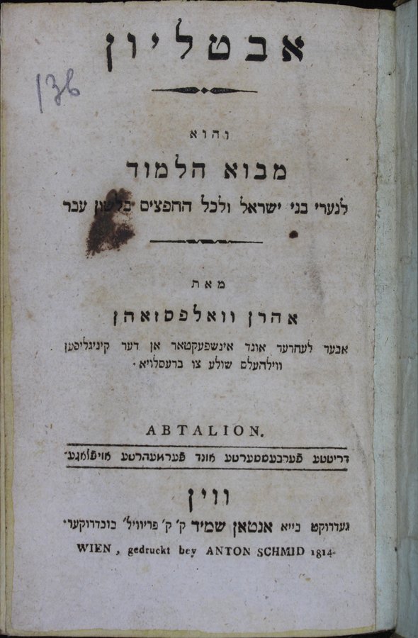 Avtalyon : ṿe-hu mavo ha-limud le-neʻari bene Yiśraʼel ṿele-khol ha-ḥafetsim, be-lashon ʻEver = Abtalion / me-et Aharon Ṿolfsohn.