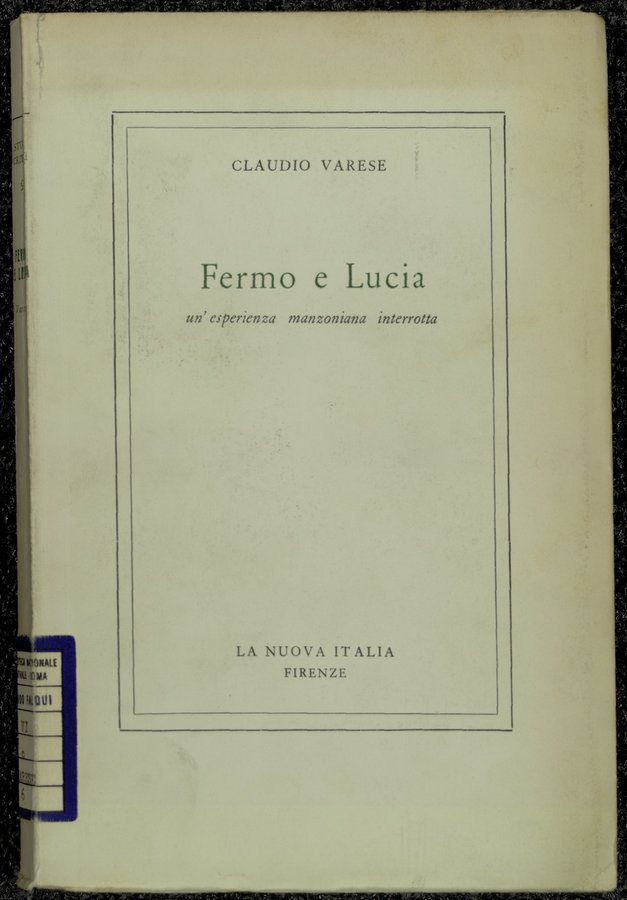- Fermo e Lucia : un'esperienza manzoniana interrotta / Claudio Varese